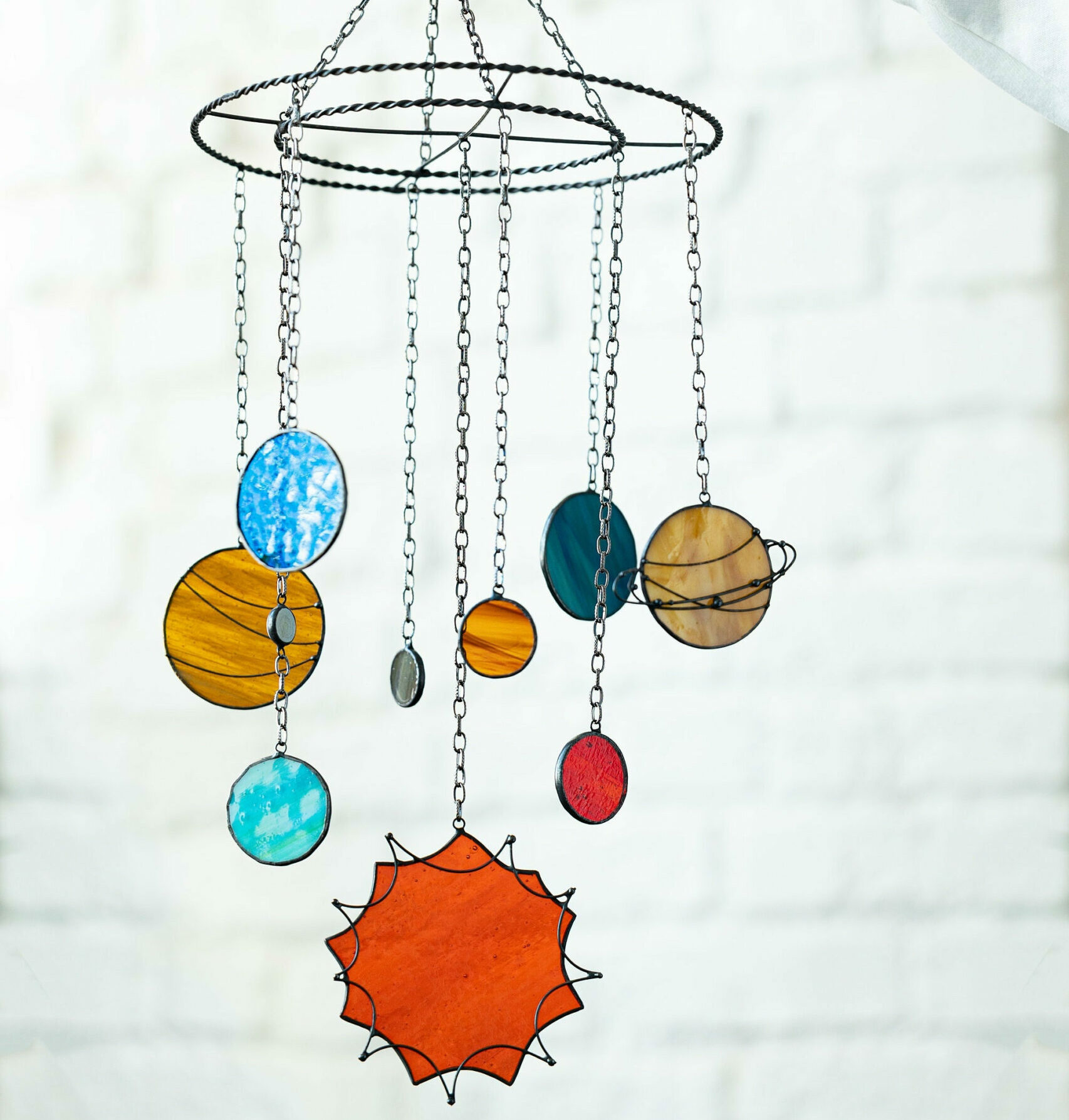 Stained glass planets completely handmade using the copper foil technique:each little glass piece individually cutted, grinded and foiled. Then soldered together and finish it with cleaning and polishing with lots of care and love.